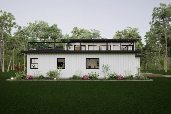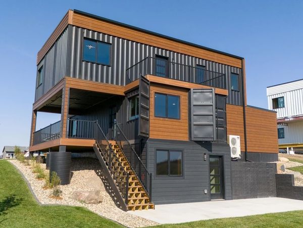This gorgeous three-bedroom container home, includes a flexible den and 2.5 baths, boasting three outdoor patio areas. The walkout basement adds an extra layer of functionality to this stylish and spacious residence.